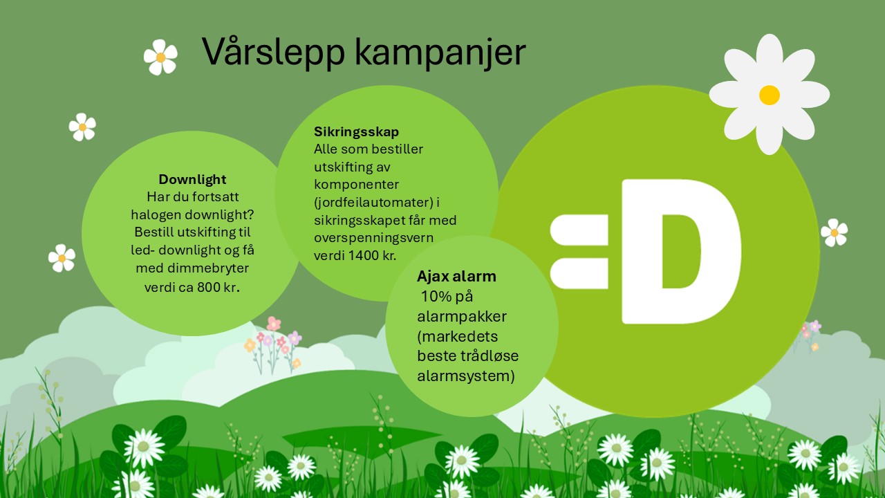 •Sikringsskap: alle som bestiller utskifting av komponenter (jordfeilautomater) i sikringsskapet får med overspenningsvern verdi 1400 kr.